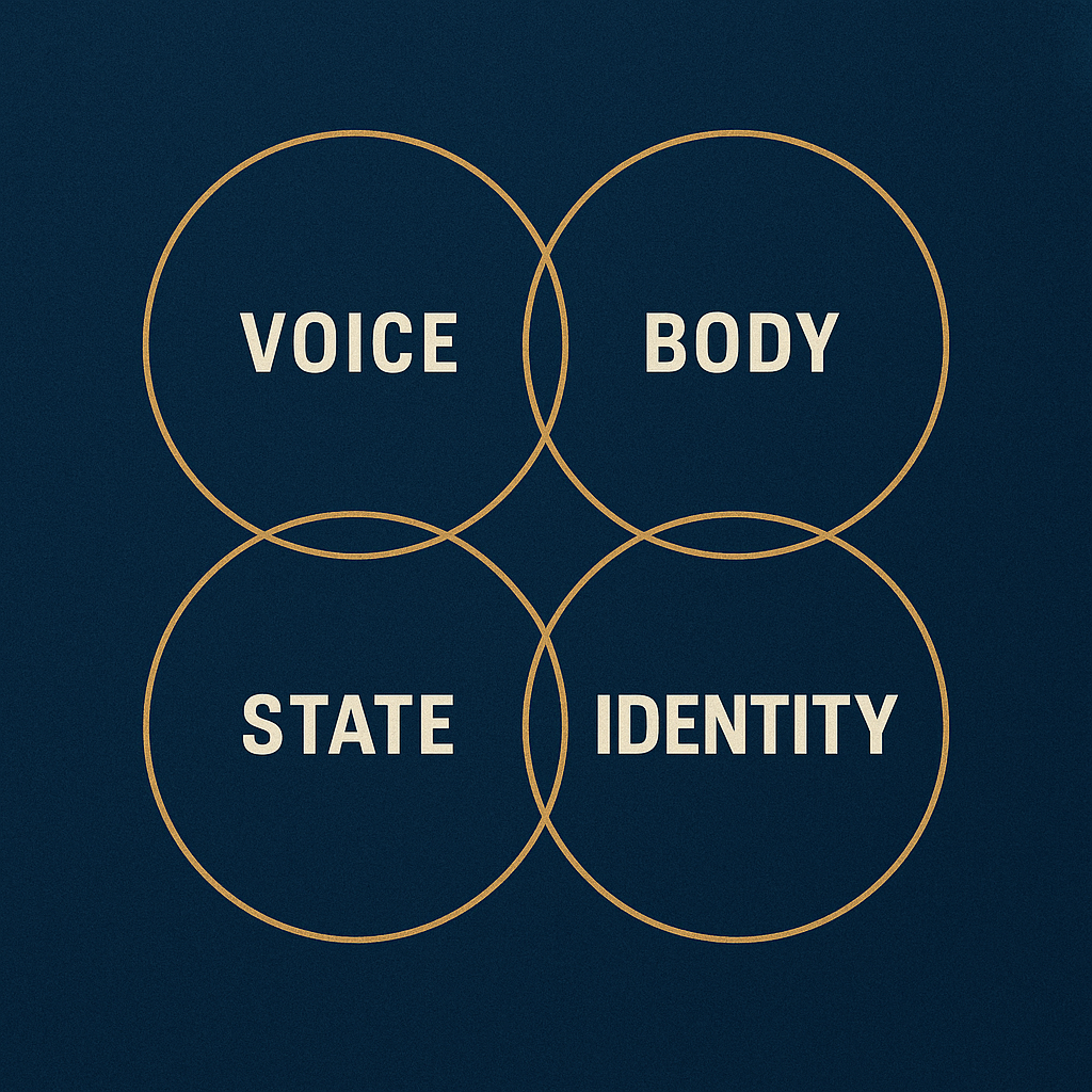 Η Identity Logic, αντίθετα, εμφανίζεται όταν το σύστημα σταθεροποιείται. Δεν περιέχει δραματικές φράσεις, ούτε υπερβολική ανάλυση. Είναι απλή, σταθερή και εσωτερικά ήρεμη: «μπορώ να προχωρήσω», «το σώμα μου με στηρίζει», «έχω πρόσβαση στη φωνή μου», «είμαι εδώ». Η μετάβαση από την Trauma Logic στην Identity Logic δεν είναι θέμα θέλησης, αλλά θέμα πρόσβασης: όταν η ventral λειτουργία επανενεργοποιείται, ο άνθρωπος δεν “προσπαθεί” να γίνει καλύτερος απλώς γίνεται.